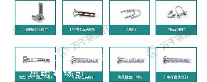 1.機螺釘 2.自攻螺釘 3.鉆尾螺釘 4.墻板釘 5.纖維板釘 6.木螺釘7.六角木螺釘 8.不脫出螺釘 9.組合螺釘 10.微型螺釘 11.家具螺釘 12.電子螺釘頭型:1.六角頭(hexagon head) 2.六角頭法蘭面(hexagon head with flange) 3.