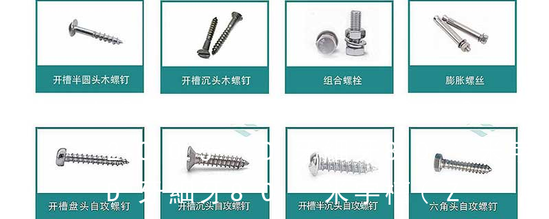 (鐵板牙自攻螺絲) B-2: Plastic Tapping Screw. (塑膠用,自攻螺絲) C: Wooden Screw : 木工螺絲 D: Drywall Screw :水泥墻螺絲 E: Self Drilling Screws鉆尾螺絲(不銹鋼鉆尾螺絲,復(fù)合材料鉆尾螺絲) F:膨脹螺絲,四片膨脹螺絲又